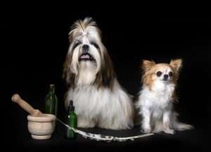 shih tzu and chihuahua in studio